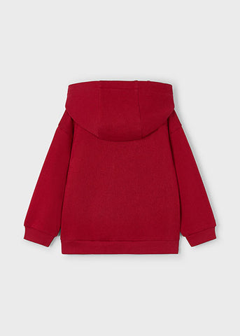 Deze bordeaux hoodie heeft een stoere opdruk van een motorrijder aan de voorzijde.