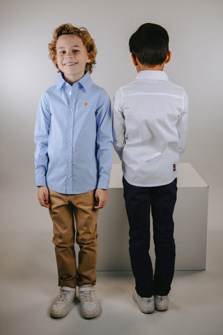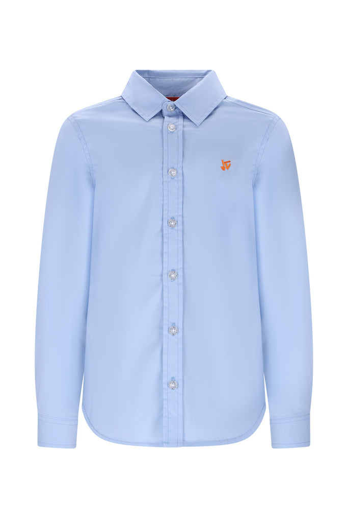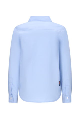 Dit lichtblauw hemd heeft het logo op de borst.